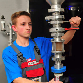 Maischen, Spindeln, die Entnahme und Prüfung von Stichproben und das Beurteilen des Malzes – das alles und noch viel mehr umfasst die Welt von Elias Rittmayer. Mit seinem großen Wissen darüber konnte er letztlich auch den Landeswettbewerb der frisch gebackenen Brauer- und Mälzer-Gesellen für sich entscheiden. „Mir macht es halt einfach Spaß“, sagt Elias ganz bescheiden. Sein Motto lautet: „Wenn ich etwas mache, dann richtig“. Und so will er nach einem Jahr Gesellenzeit in Hallerndorf die Braumeisterschule in Gräfelfing bei München besuchen. Ob sich danach ein Studium anschließt, lässt Elias derzeit noch offen. Sein Chef Georg hofft natürlich, dass ihm Elias erhalten bleibt: „Die Hauptsache aber ist, er bleibt der Branche treu. Denn solche begabten Leute brauchen wir.“