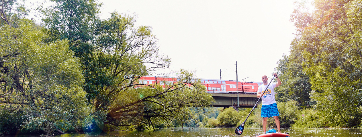 Die VGN-Bahnsommer-Gewinnspieltour „Stand Up Paddling auf der Altmühl mit dem Adventure-Professor“
