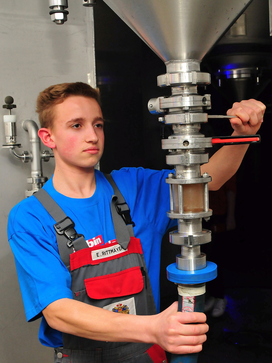Maischen, Spindeln, die Entnahme und Prüfung von Stichproben und das Beurteilen des Malzes – das alles und noch viel mehr umfasst die Welt von Elias Rittmayer. Mit seinem großen Wissen darüber konnte er letztlich auch den Landeswettbewerb der frisch gebackenen Brauer- und Mälzer-Gesellen für sich entscheiden. „Mir macht es halt einfach Spaß“, sagt Elias ganz bescheiden. Sein Motto lautet: „Wenn ich etwas mache, dann richtig“. Und so will er nach einem Jahr Gesellenzeit in Hallerndorf die Braumeisterschule in Gräfelfing bei München besuchen. Ob sich danach ein Studium anschließt, lässt Elias derzeit noch offen. Sein Chef Georg hofft natürlich, dass ihm Elias erhalten bleibt: „Die Hauptsache aber ist, er bleibt der Branche treu. Denn solche begabten Leute brauchen wir.“