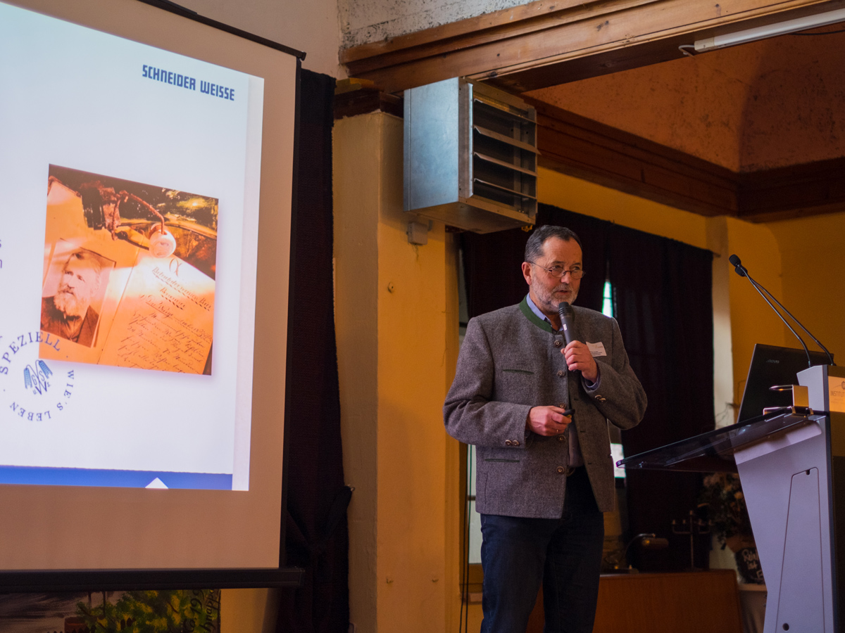 Im nächsten Vortrag ging es um die Wiedererweckung historischer Getreidesorten. Beispielsweise nahezu alle heute gebräuchlichen Gerstensorten gehen auf denselben Zuchtstamm zurück, so Ulrich Schulze von der Landwirtschaftskammer Nordrhein-Westfalen und Wilhelm Schoppmeier von „Getränke Projekte“ aus Oelde. In mühsamer Kleinarbeit konnten mittlerweile einige früher übliche Gerstenstämme neu kultiviert und vermälzt werden. Gemeinsam mit Marcus Jentsch vom Institut Romeis waren in den letzten Monaten daraus Versuchssude mit alten Gersten wie beispielsweise „Chevallier“ entstanden, die die Seminarteilnehmer verkosten konnten. Der nächste Vortrag öffnete einen Blick in die Zukunft eines anderen Rohstoffes: Zwei neue Hopfensorten, die noch gar keinen eigenen Namen tragen, hatten die Spezialisten der Hopfenforschungszentrums in die Versuchsbrauerei des Bad Kissinger Romeis-Institutes gebracht. Mit diesen Hopfen waren zwei verschiedene Pils-Biere entstanden, die ebenfalls in den Verkostungsgläsern in Bad Staffelstein landeten. Sowohl historische Getreide- wie auch neue Hopfensorten begeisterten mit einer spannenden Aromatik und weiteren Eigenschaften – was neue Möglichkeiten für die Brauer eröffnet, so waren sich alle Anwesenden einig.