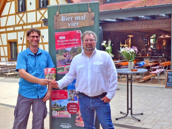 Auf dem Hallerndorfer Kreuzberg, gleichzeitig einer der Tipps im Buch, demonstrierten die Bamberger Autoren diese Woche sehr anschaulich das Konzept ihres neuen Werkes, das die schönsten fränkischen Biergärten mit Freizeittipps wie Spielplätzen, Attraktionen oder Museen verbindet. „Wir haben mit den 100 Biergarten-Ausflügen einen handlichen und erschwinglichen Wegweiser für alle Menschen geschaffen, die hier in unserer Region auf Entdeckungsreise gehen“, fasst Markus Raupach zusammen. Dabei betont er auch, dass alle Ziele mit dem VGN erreichbar sind. Die vorgestellten Gastronomien mussten allesamt mit regionaler Küche und familienfreundlichen Angeboten aufwarten, dabei wurden auch Kriterien wie Spielplätze, Speisenangebot oder Lage berücksichtigt.