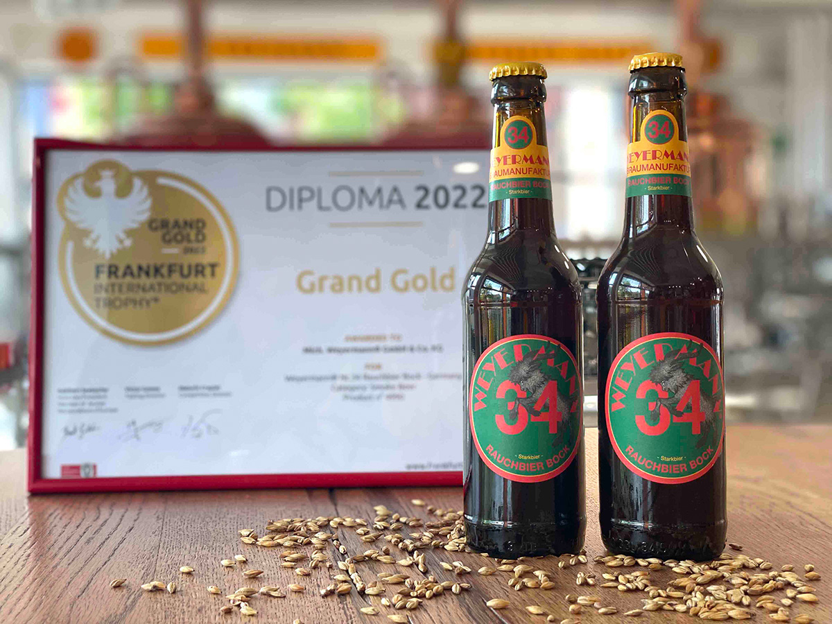 Bestnoten und damit die höchste Auszeichnung in Form von „Großes Gold“ gab es zum einen für den Weyermann® Nr. 34 Rauchbier Bock und die Weyermann® Nr. 30 Jürgen‘s gereifte Weizheit.