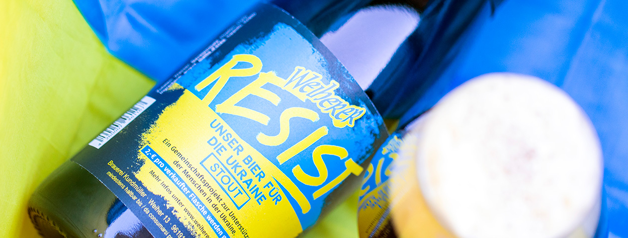 Wer die Ukraine mit dem Genuss von Bier unterstützen will, der kann „Resist“ ab sofort im Brauerei-Gasthof Kundmüller vor Ort trinken oder sich dort sowie im gut sortierten Getränkemarkt Flaschen für zuhause mitnehmen.