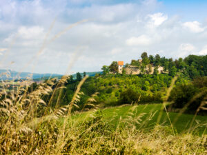 Quer durch die Haßberge führt eine weitere Rallye zwischen Burgruinen und romantischen Schlössern – ein (noch) Outdoor-Geheimtipp, erschlossen durch die beiden brandneuen VGN-Freizeitlinien Burgenwinkel-Express (Linie 1159) und Bier- und Weinexpress (Linie 1169).