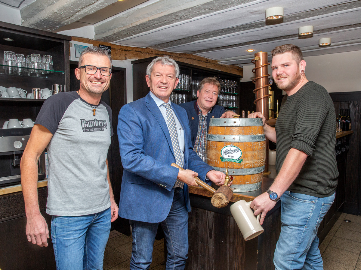 Angestochen hat das erste Fass der Bamberger Landrat Johann Kalb – aus gutem Grund. Das starke, obergärige Bier wurde im Rahmen der Internationalen Woche des Landkreises Bamberg gebraut. „Ich freue mich, dass Internationalität hier auf eine so besonders genussvolle Art gezeigt wird“, so der Landrat nach dem ersten Schluck vom „Zapfenduster“. Und Brauerei-Inhaber Oswald Kundmüller fügt hinzu: „Wir wollten einen außergewöhnlichen und hier nicht so üblichen Bierstil brauen, zu dem wir mit einer sanften Rauchmalznote noch eine regionale Komponente hinzugefügt haben. Der passende Name war auch schnell gefunden. Das Zapfenduster ist also beides: international und irgendwie doch heimisch.“