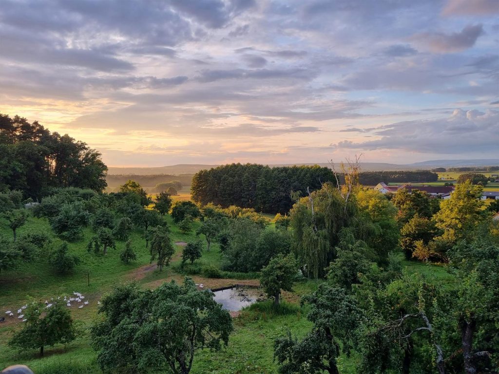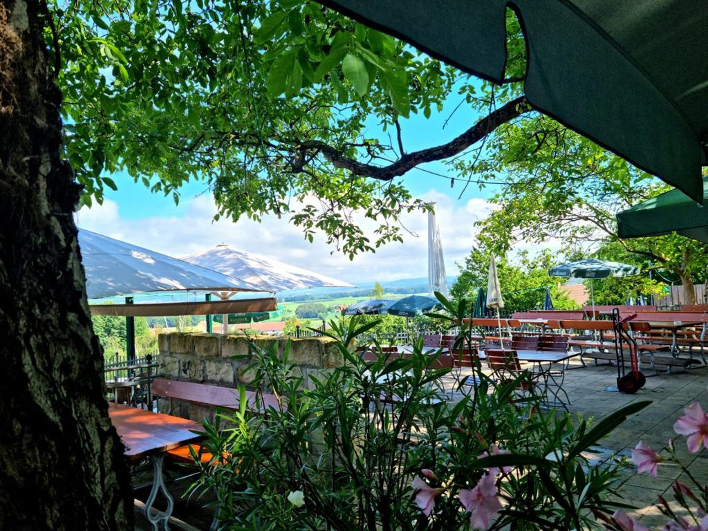 Man hat den Eindruck, die gesamte Fränkische Schweiz wäre im Blickfeld. Der alteingesessene Biergarten, der sich über zwei Terrassen-Ebenen erstreckt, bietet ausreichend Platz um unter den schattenspendenden Walnussbäumen zu verweilen, versenkbare Panoramascheiben schützen bei Bedarf vor Wind. Bereits in der sechsten Generation gibt es hier hausgemachtes Essen, selbstgebackene Kuchen und verschiedene Biere vom Fass. Übrigens einer der wenigen Biergärten, in dem wir das Spitzenbier der Brauerei Meister aus Unterzaunsbach gefunden haben.