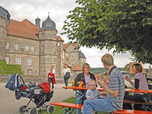 Hat man sie erst einmal bestiegen, lockt die Kronacher Festung mit einem Blick der seinesgleichen sucht. Was will man dann noch mehr, als es sich bei einem Bierchen der Brauerei Kaiserhof und einer fränkischen Brotzeit gut gehen zu lassen. Im wunderschönen Biergarten der Bastion Marie gibt es das und noch vieles mehr. Hier kann der Gast dann auch aus einer sehr umfangreichen Karte mit außergewöhnlichen Kreationen wählen, immerhin muss ja genügend Kraft für den „Abstieg“ gesammelt werden.