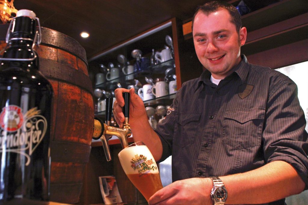 Eigene Brauerei: Dunkles, Hefeweizen, Helles (ab Mai), Bock (saisonal), Rauchbier (ab Oktober) (alles vom Fass).