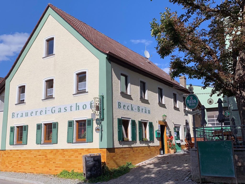 In der Küche und an der Theke der Brauereigaststätte versorgt die Familie Beck mit ihrem Team die Gäste. Sie bieten eine abwechslungsreiche und wöchentlich wechselnde Speisekarte mit fränkischen Spezialitäten. Je nach Jahreszeit gibt es Karpfen, Brotzeiten, Schnitzelvariationen, Salate der Saison und viele andere Köstlichkeiten. Dazu werden verschiedene Biere nach eigener Rezeptur serviert. Auf ihren Social-Media-Kanälen hält Familie Beck ihre Gäste immer auf dem Laufenden.