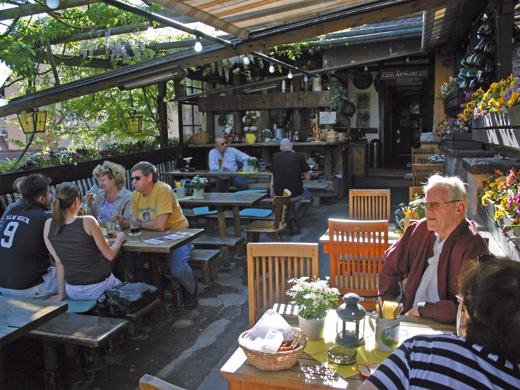 Der höchstgelegene Nürnberger Biergarten erwartet seine Besucher am Fuß des Burgfelsens. Der ist übrigens Geotop und Kletterfelsen für Kinder. Im Garten sitzt man an rustikalen Eichentischen inmitten vieler Blumen und wilden Weines. Da schmeckt das umfangreiche kulinarische Angebot vom Krustenschäufele bis zum Wiener Schnitzel. Dazu ein kühles Bier aus dem Tucher-Sortiment – darunter das legendäre Rotbier vom Fass – oder sogar ein Bamberger Schlenkerla – was braucht man mehr?
