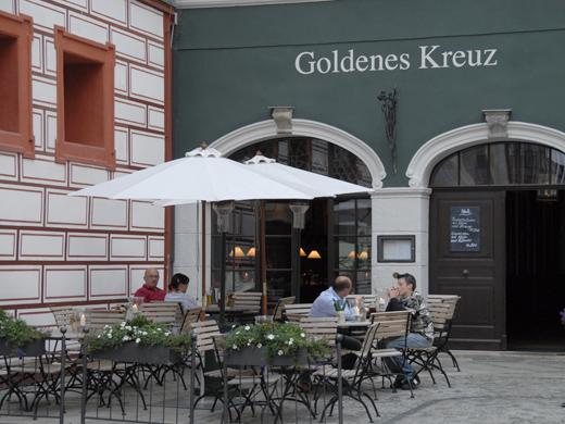 Zumindest für Europäer – das Gebäude datiert aus dem Jahr 1477 und ist damit eines der ältesten in ganz Coburg. Der Thüringer Herzog verlieh einst das Schankrecht, als Kaufleute und Fuhrknechte die Hauptkundschaft des Hauses stellten. Später war es auch Heimat der Reichspost und gilt heute als ältestes Gasthaus der Stadt. Die letzte der vielen Renovierungen endete 2005 mit der Wiedereröffnung. Seitdem geht es steil bergauf am Coburger Marktplatz – und im Biergarten dahinter. 2010 wurde das Goldene Kreuz als eines der schönsten Gasthäuser Deutschlands ausgezeichnet.