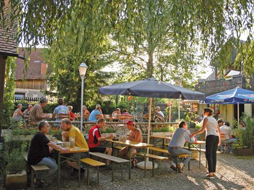 Nach der Zeit als Mühle vor weit mehr als 100 Jahren diente das Haus als Heimstatt für die Spielzeugherstellung, brannte dann aber in den 60er Jahren ab und konnte erst 1980 wieder aufgebaut werden. Der Charme des alten Gebälks blieb erhalten und man schuf eine florierende Gaststätte mit einem wunderschönen Garten (und altem Mühlrad). Das gelingt ihnen unter anderem wegen der qualitativ hochwertigen und geschmackvollen Speisen frei von Konservierungsstoffen und Geschmacksverstärkern mehr als gut, weshalb die „Alte Mühle“ zu einem unserer Geheimtipps avanciert.