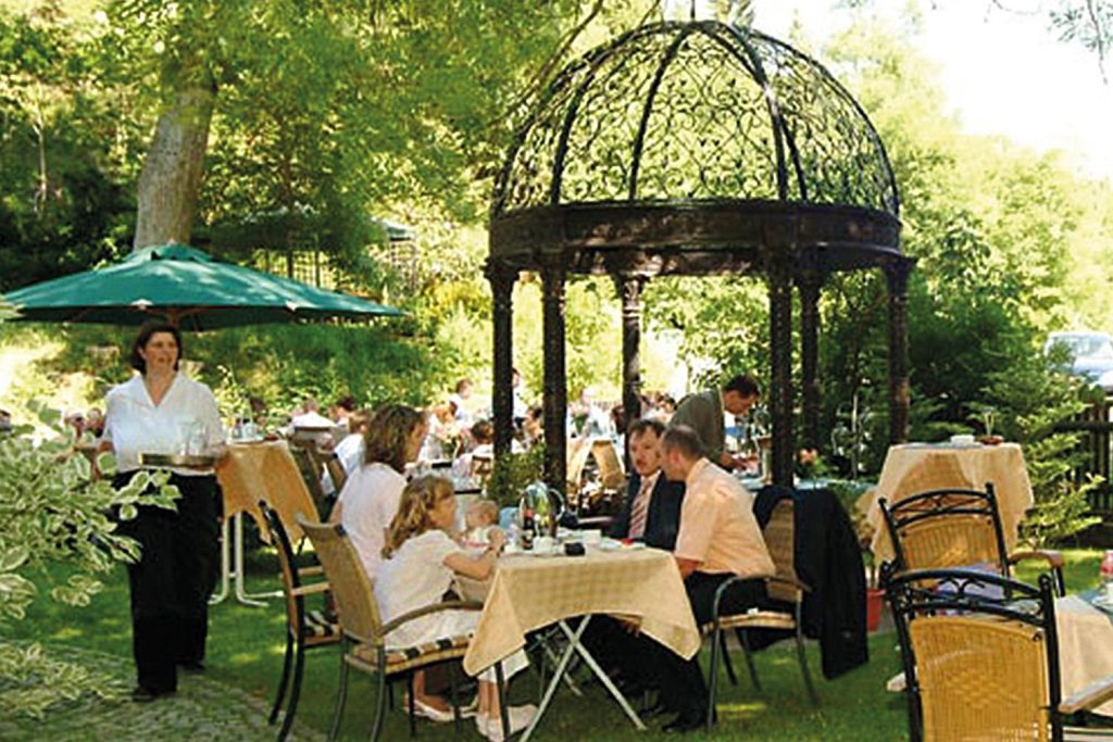 Hausmacher Brotzeiten. Täglich große Karte mit warmen Gerichten. Spezialitäten: Selbst gezüchtete Forellen, Wild aus heimischer Jagd, Hausgebäck.