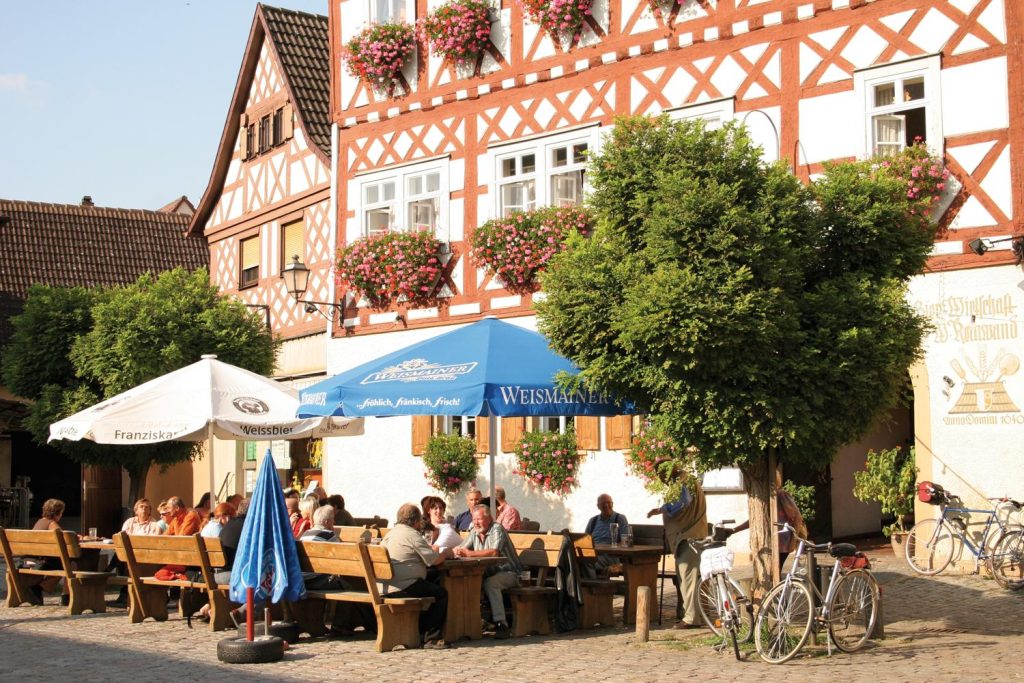 Im schönen altfränkischen Seßlach gibt es eine besondere Biertradition: Im Kommunbrauhaus entsteht das Bier für die Gasthäuser und Hausbrauer, die jeden Fasstag ihre Ration abholen können. Für den Großabnehmer Reinwand wurde eine Pipeline verlegt, durch die der Saft den Weg in die durstigen Kehlen findet. Seit der Gründung 1640 befindet sich das Gasthaus im Familienbesitz. Vor dem Haus auf dem malerischen Maximiliansplatz bilden Biergarnituren einen kleinen gemütlichen Biergarten.