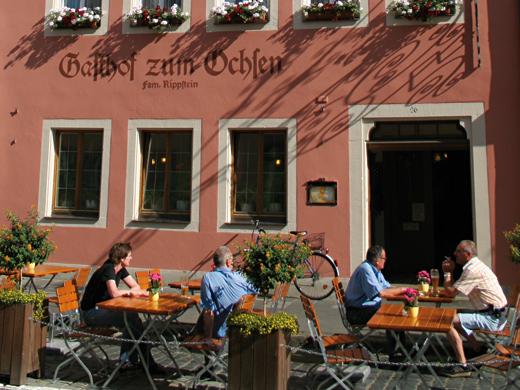Der Ochse liegt mitten im historischen Rothenburg und ist damit einer der Schauplätze des alljährlichen Meistertrunk-Festspiels. 1631 belagerte und unterwarf Tilly, der große katholische General, mit seiner Armee die Stadt Rothenburg und hielt Kriegsgericht. Dieses ist der Kern des Spektakels, das immer um die Pfingsttage herum seinen Lauf nimmt. Dazu gehört auch der Heereszug, der mit vielen Wagen und orginalgetreuen Kostümen und Waffen der damaligen Zeit die gesamte Altstadt bevölkert.