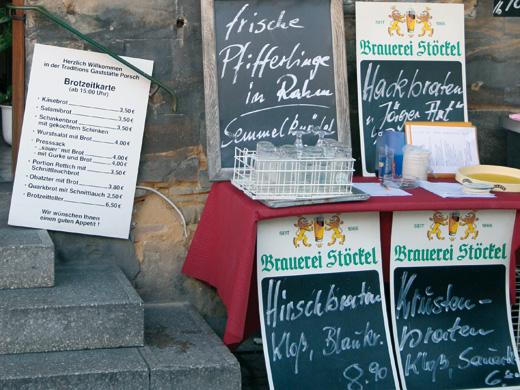 Beim Porsch in Bayreuth geben die Frauen ihre Männer ab – die zischen gemütlich das eine oder andere dunkle Landbier, während Frau mit Kreditkarte und Scheckbuch die umliegenden Geschäfte der Innenstadt abklappert. Natürlich ist das nicht die Regel in einem der ältesten Gasthäuser Oberfrankens, wo schon über 300 Jahre lang Gäste bewirtet werden. Eine neue Gästegruppe bilden die Radler, die am Rotmaintal-Radweg entlang hier vorbeikommen.