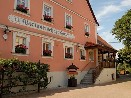 Die Traditionsgastwirtschaft Hopf war bei unseren jahrelangen Recherchen die einzige, die sich das Bamberger Kaiserdom-Bier auf die Fahnen geschrieben hat. Doch auch in kulinarischer Hinsicht hat Herbert Hopf, der die fünfte Generation vertritt, einiges zu bieten: Eigene Karpfen-, Enten- und Gänsezucht und Wild aus eigener Jagd. Unter den früheren Besitzern (Familie Marr) stellte das Haus sogar ab 1787 eine eigene Brauerei und Brennerei, die aber Ende des 19. Jahrhunderts eingestellt wurden.