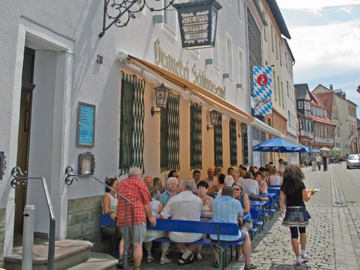 Dieser Glaubensspruch der Bierjünger thront groß an einem Stahlträger über dem Sudkessel des Schlappeseppels. Und zu dieser Religion bekehrt das älteste Gasthaus Aschaffenburgs schon seit 1631. Gebraut wird zwar leider nicht mehr. Im Ausschank sind Miltenberger Faust-Biere, aber das Schlappeseppel-Bier wird immer noch nach alten Rezepten in Großostheim von Eder & Heyland‘s gebraut. Vom wunderschönen Biergarten aus hat man einen traumhaften Blick auf den Marstallplatz mit Schloss und Steinmetzschule.