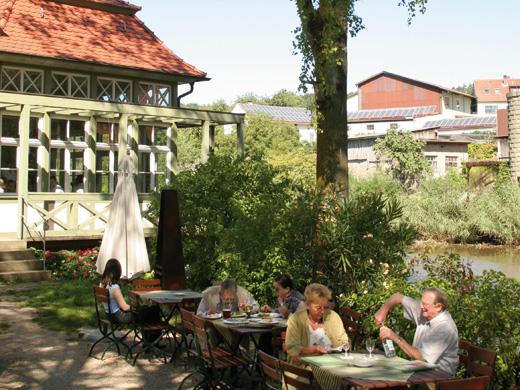 Der Biergarten des Gutshofs liegt im Innenhof und am hauseigenen Weiher – drumherum Fachwerkgebälk, alter Baumbestand und der Geruch der Geschichte. Besonders schön ist die Lage unmittelbar am Wasser und die Möglichkeit, direkt um die Baumstämme zu sitzen. Mitte des 18. Jahrhunderts erbaut, erhielt Familie Andres nur etwa 100 Jahre später auch die Schankerlaubnis. Die Zukunft als Mittelpunkt der näheren Umgebung war begründet. In der Küche finden sich ausschließlich Produkte aus der Region oder aus eigener Landwirtschaft.