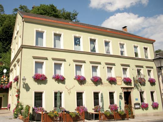 Das stattliche Haus des Hotels Goldener Hirsch liegt direkt in Bad Berneck, in der Nähe der städtischen Freilichtbühne. Das Haus gibt es seit 1787, war damals schon Hotel und hatte Personalzimmer. Später diente es etwa 60 Jahre lang als Rathaus. Im November 1975 übernahmen schließlich Helmut und Heidi Teufel das Haus und renovierten es. Seit 2006 führen Tanja und Wolfgang Teufel den Betrieb. Bei all dieser Tradition verwundert es nicht, dass hier manchmal Paare Goldene Hochzeit feiern, die im „Goldenen Hirschen“ schon ihre Vermählung gefeiert haben. Besonders zu empfehlen ist der urige kleine Biergarten hinter dem Haus. Hier kommt richtig Atmosphäre auf. Da schmecken die Bayreuther Biere und die stets frischen saisonalen Gerichte gleich doppelt so gut!
