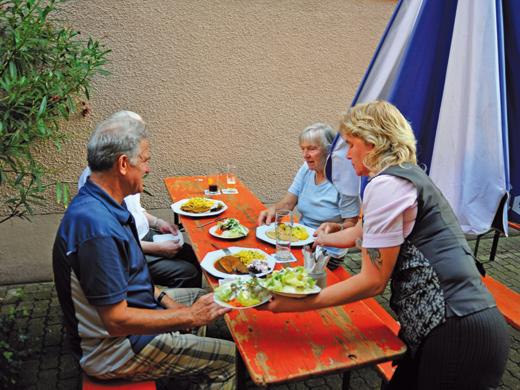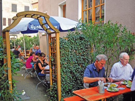 …in der Hopfenhauptstadt Spalt liegt der Gasthof Krone mit seinem eher länglichen kleinen Biergarten, der aber nicht minder schön ist als die anderen in der Stadt. Schon über 100 Jahre trifft man hier auf die Angehörigen der Familie Stengel, die den Gasthof auch heute noch als Familienbetrieb bewirtschaften. Tipp: Im August findet das Wirtefest auf dem Gabrieliplatz statt. Die Wirte ziehen dann mit Küche und Theke dorthin, und jeder Wirt präsentiert sich in einem kleinen Zelt.