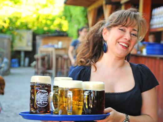 Der mittelalterliche Kopernikus Biergarten ist gar nicht so einfach zu finden. Man muss nämlich erst die Stufen im Krakauer Haus emporsteigen, bevor es dann direkt an die Burgmauer geht. Das Gebäude an sich schenkte die Stadt Nürnberg ihrer Partnerstadt Krakau, weswegen neben einer guten Auswahl fränkischer Landbiere auch polnische Gerichte auf der Speisekarte stehen. Besonders spannend fanden wir die Piroggen, eine Art polnische Maultasche mit unterschiedlichen Füllungen, die sowohl als Vor- als auch als Hauptspeise genossen werden kann.