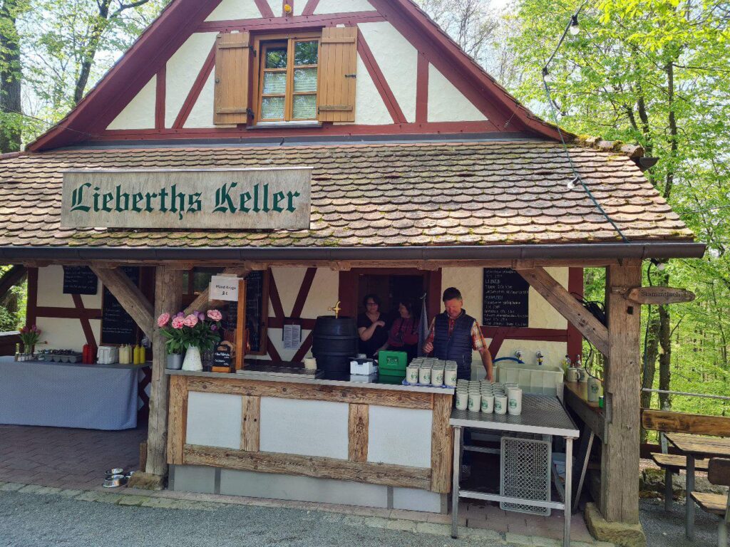 „Der zweite links“ – Das ist die Antwort, wenn man Einheimische auf dem Weg zum Kreuzbergkeller Lieberth nach dem Weg fragt – zumindest, wenn man aus Richtung Hallerndorf kommt. Mit dem Auto ist dann trotzdem bald Schluss, eine kleine Wanderung zum Berg ist angesagt. Die allerdings lohnt sich – das naturtrübe Kellerbier verlangt nach einem tiefen Schluck für jeden gelaufenen Meter. Seit April 2024 bewirtet und verwöhnt der gelernte Metzger Andreas Fäßler hier mit seinem Team die Gäste.