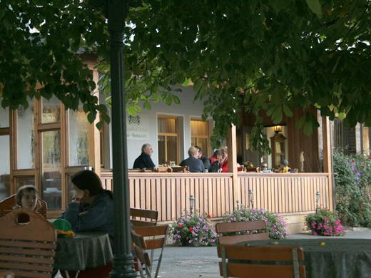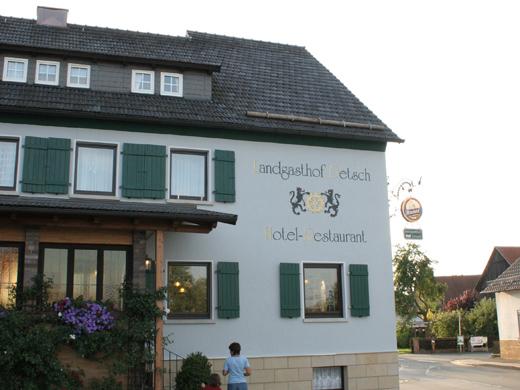 Bei Familie Detsch sitzt man im wunderschönen Biergarten sehr angenehm unter einer großen Kastanie und einer alten Linde. Auch die Qualität der angebotenen Speisen sollte Erwähnung finden: eine eigene Angusrinder-Zucht mit Weide- und Muttertierhaltung, ein eigener Kartoffelacker und ein ausgedehntes Kräuterbeet mitten zwischen den Gästen im Garten. So kann es also passieren, dass nach der Bestellung erstmal geerntet wird. Nachdem auch seltene Kräuter angebaut werden, ist der Besuch durchaus auch lehrreich – Barbara Detsch erklärt auch gerne etwas zum Grün im Bauerngarten.