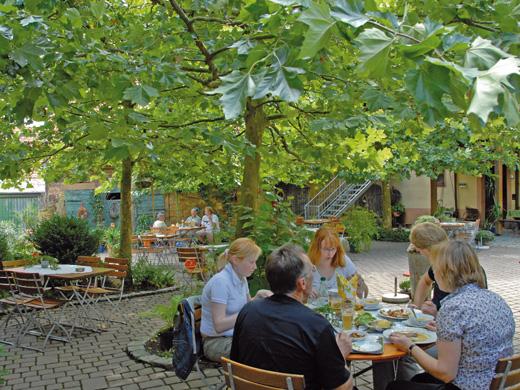 Im weinfränkischen Brünnau haben wir ein bieriges Kleinod gefunden: Den Biergarten der Gastwirtschaft „Zur Krone“. Unter dem Anwesen (dem ehemaligen Zehntkeller) liegt heute noch der historische Felsenkeller, der nach wie vor einen kleinen Brunnen im Hof speist (allerdings mit Wasser, leider nicht mit Bier). In dem reinen Familienbetrieb packen alle gern mit an – momentan stehen zwei Generationen gleichzeitig hinter dem Herd. Selbst die Brotzeiten sind Familienprodukt.