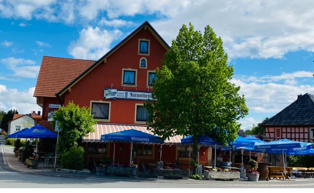 Auch wenn das Lesen der Selbstbezeichnung schwerfällt, sind Genießer hier bestens aufgehoben. Seit mittlerweile sieben Generationen sind die Hofmanns hier am Ruder und erfinden sich immer wieder neu. So wie auch diesmal, als die Küche einen modernen Touch bekommen sollte. So stehen nun neben dem Schäuferla die Terriyaki Ente, und neben der Currywurst das Thelitzer Fetasteak und die Ochsenfetzen „Madagaskar“. Für uns ein äußerst gelungenes Cross-Over mit einem wunderschönen Biergarten mit Abwechslungsgarantie.