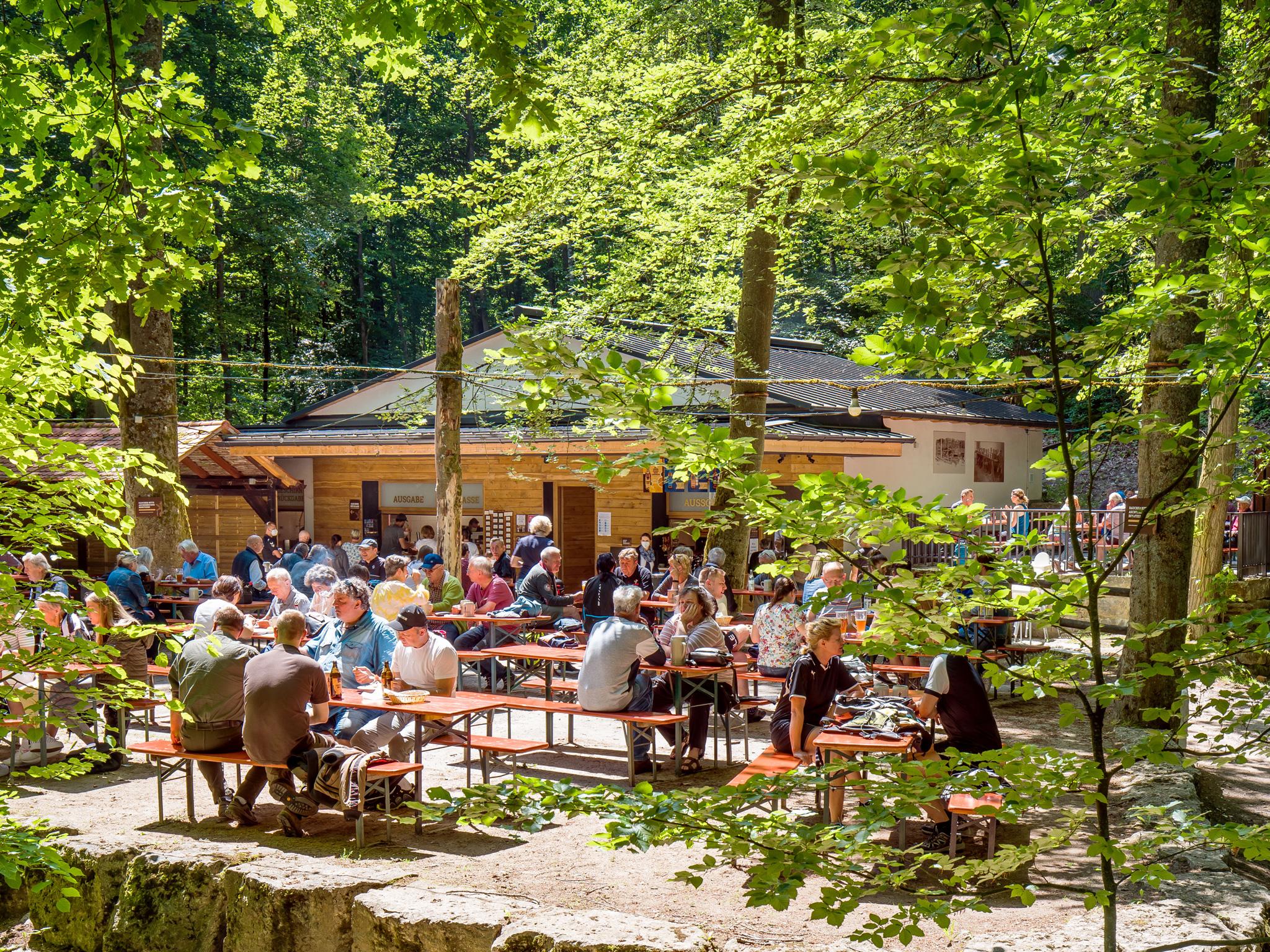 Der Biergarten über dem Löwenbräu Felsenkeller wird ganz einfach Felsenkeller genannt. Zünftige Brotzeiten, frisch gezapftes Bier und eine urgemütliche Atmosphäre zeichnen diesen herrlichen Biergarten aus. Im Schatten von Laubbäumen, nur wenige Gehminuten vom Gasthof entfernt, findet man den Felsenkeller. Kinder finden es im Wald sowieso immer spannend, und damit sie auch nicht zu weit vom Felsenkeller abdriften, gibt es Klettermöglichkeiten und eine Schaukel. Felsenkeller wurden oft unter schattigen Laubbäumen angelegt oder mit Kastanien bepflanzt, um auch im Sommer das Bier kühl zu halten und vor dem Umkippen zu bewahren. Mit der Zeit wurden die Bierkeller neben der Lagerung auch zum Ausschank genutzt und aus den schattigen Plätzen darüber entstanden die für Bayern so typischen Biergärten. Dieser Tradition folgend wird der Löwenbräu Felsenkeller auch in einigen Büchern als Geheimtipp unter den Kellern erwähnt, wo Bierfans 150 Prozent Bierkultur erleben können.