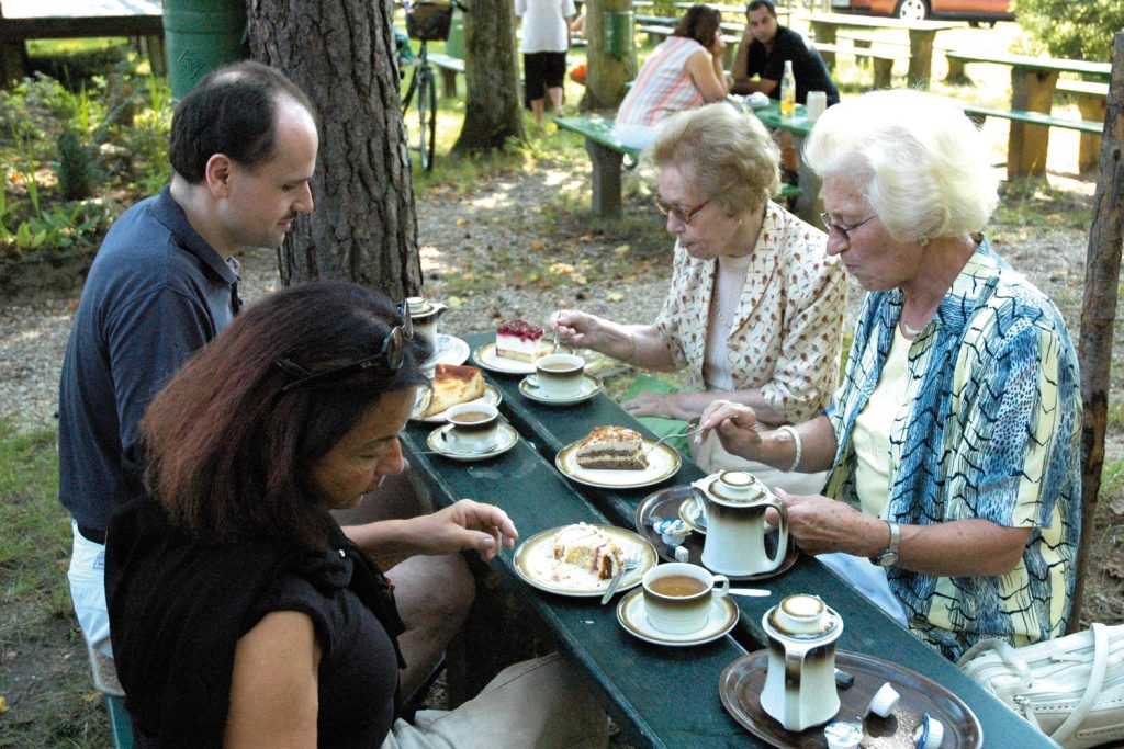 Auf der Alm regiert der Verein „Die Regnitztaler e.V.“, der sich der Pflege der fränkischen Traditionen verschrieben hat. Dementsprechend gibt es zweimal im Jahr ein rauschendes Fest, zu dem immer weit über 1000 Besucher kommen – das Waldfest und das Herbstfest, beide mit Musik. Ansonsten kümmern sich die Vereinsmitglieder liebevoll um jeden, der einen Zwischenstopp auf der Alm einlegen möchte. Alle Speisen sind selbst gemacht, insbesondere die Kuchen sind immer wieder eine Überraschung.
