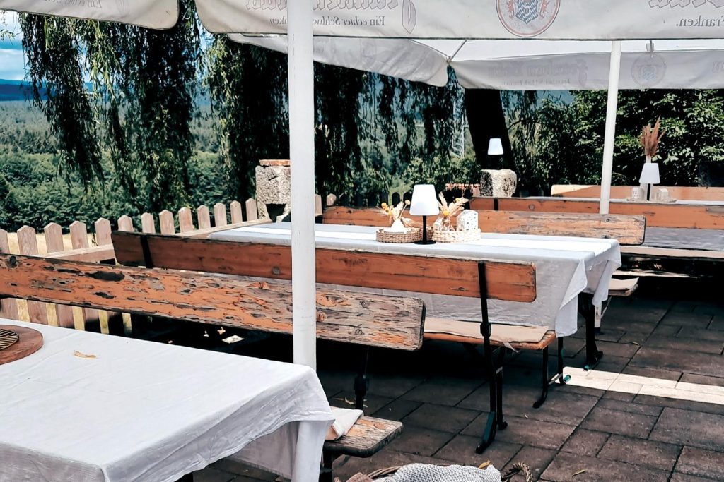 Hausmacher Brotzeiten. Täglich kleine Karte mit warmen Gerichten. Spezialitäten: Waldarbeiterschnitzel, Flammkuchen, verschiedene Schnitzel, Salate, Lamm- und Damwildgerichte vom eigenen Hof. .