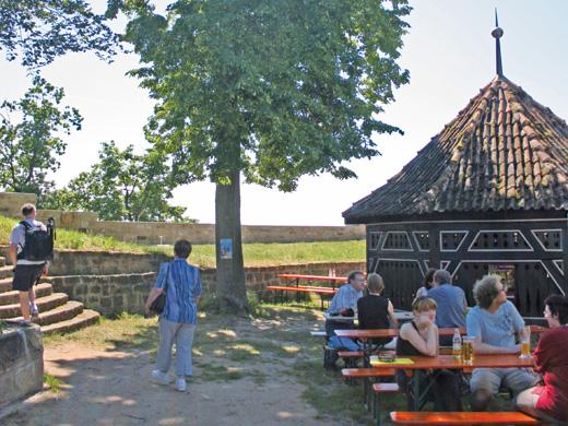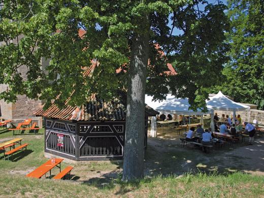 So stilecht wie hier im Hof der Burgruine Königsberg lässt sich frisches Bier kaum genießen. Immerhin saßen wohl schon im 12. Jahrhundert die Ritter hier und zechten, was das Zeug hielt. Es geht sogar die Mär, dass Kaiser Barbarossa persönlich hinter der Gründung der Burg steckte. Doch es gibt auch Verbesserungen seit der alten, dunklen Zeit. Zumindest hat damals sicher kein Strammer Max mit Lachs auf den Tischen gestanden, die Wildgerichte dürfte es allerdings schon gegeben haben.