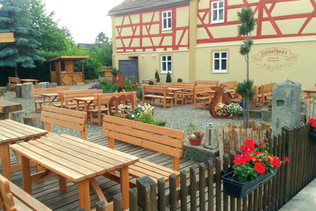 … die Luft geht frisch und rein! So lautet nicht nur die heimliche Frankenhymne, diese Worte stehen auch groß auf einer der Außenmauern des Spitalhauses geschrieben. In direkter Nachbarschaft zu Stadtturm und Lauterbach können Sie hier in grandioser Atmosphäre verschiedene Landbiere genießen. Das schöne Fachwerkhaus und sein Biergarten sind zudem regelmäßig Schauplatz der unterschiedlichsten Veranstaltungen, so dass Sie hier immer wieder einkehren können, sei es zum Feierabend mit Live-Musik oder im Winter zu Glühwein und Jahresausklang!