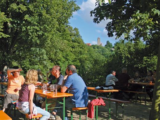 Etwa zehn Minuten Fußmarsch von der Rothenburger Innenstadt entfernt sitzt man unter den Linden und am Fluss – im wunderschönen Biergarten mit Traumambiente und echter Wohlfühlatmosphäre. Das ist ein echter Geheimtipp – abseits der großen Touristenströme eine wirkliche Oase der Ruhe und Entspannung. Wenn man mag, kann man neben der Seele auch die Füße in der Tauber baumeln und bei einem kühlen Bier die lieben Japaner in der Stadt gute Leute sein lassen. Aber Achtung, hier vergisst man schnell die Zeit!