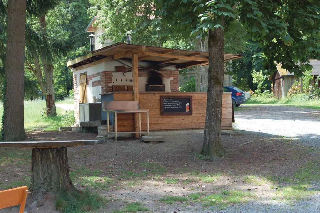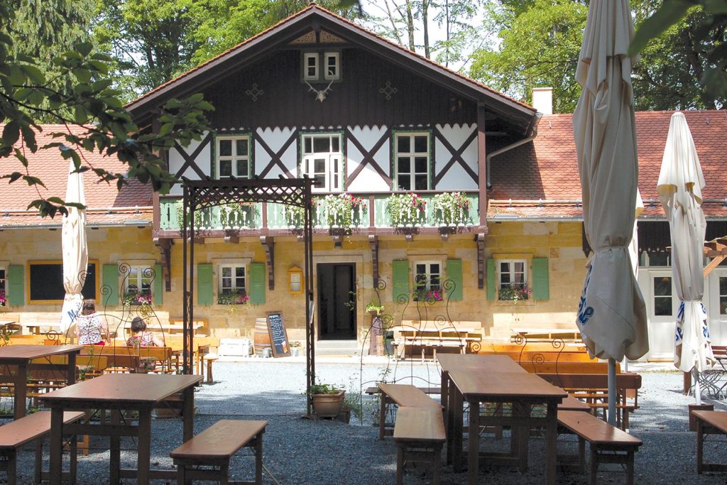 Mitten im Wald liegt das alte königliche Forsthaus, das heute Gaststätte und Biergarten beherbergt. Rund um die vier Häuser wirkt die Zeit wie stehengeblieben – und als könne der König jederzeit zurückkommen und seiner Jagdlust frönen. Dementsprechend königlich können auch Sie sich als Gast und Gästin fühlen, wenn Sie zu Vogelgezwitscher und Blätterrauschen ein kühles Bier und Käse, Schinken und kalten Braten genießen. Im Glas haben Sie dabei übrigens das Waldhüttenbier, ein Kellerbier, das die Bayreuther Bierbrauerei speziell für den kleinen Biergarten entwickelt hat.