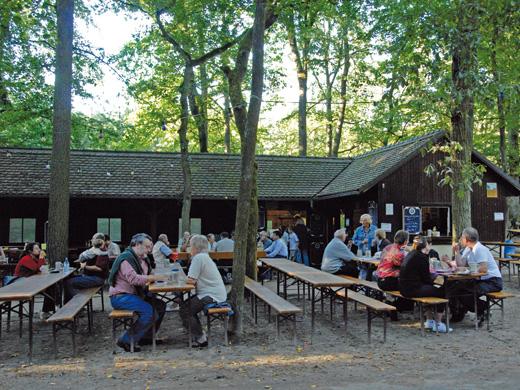Zum Waldkeller Utz läuft man einen guten Kilometer durch bzw. in den Wald (auf das Auto sollte man möglichst verzichten), und der Marsch lohnt sich – plötzlich sieht man nur noch Bäume … und Biertische um ein kleines L-förmiges Häuschen, aus dem Rauch aufsteigt – zumindest am Freitag, wenn die Chefin Makrelen und Heringe brutzelt. Das Flair ist insgesamt absolut einmalig – wenn es einen Bier-Nationalpark gäbe, wäre das die Miniaturausgabe. Selbst der Kinderspielplatz verteilt sich zwischen den Bäumen – Schaukel hier, Rutsche da.