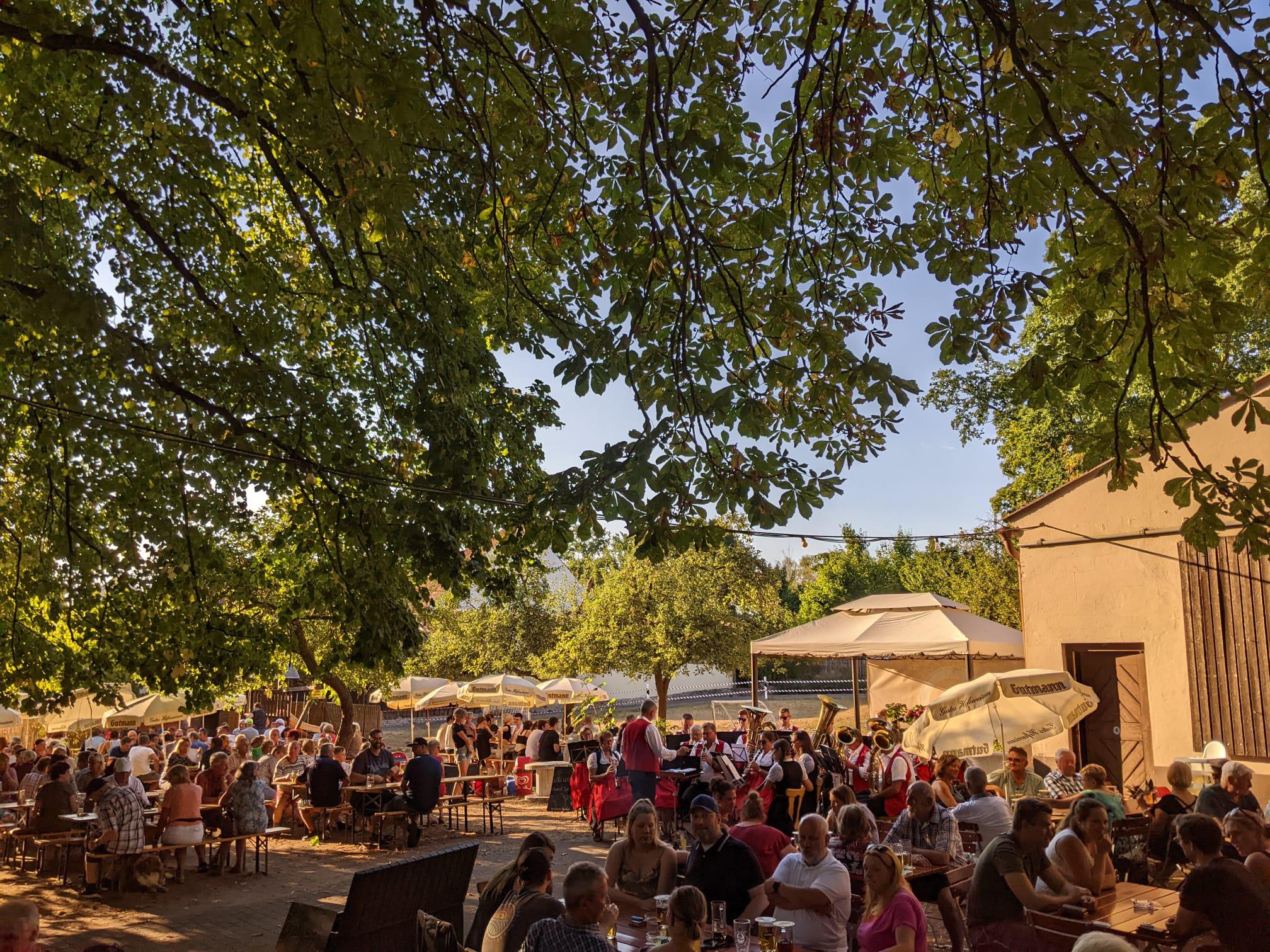 Wenn Gott sich einen Biergarten bauen würde, könnte es sein, dass er ziemlich genau so wie der der Gaststätte Döllinger wäre: eine Oase der Ruhe mit großen Bäumen und viel Liebe in jedem Detail. Dazu gehören Bratwürste und Karpfen aus dem eigenen Haus, Frühschoppen für die einen und Lampionfeste für die anderen, je nachdem, zu welcher Uhrzeit man kommt – und wie die Gewichtung zwischen leiblichem und seelischem Genuss angesiedelt ist. Dazu kommen ein abwechslungsreiches Unterhaltungsprogramm und natürlich die Liebe vom Betreiber-Paar Anja und Uwe. Kein Wunder, dass hier oft mehr Menschen sitzen, als der Ort Einwohner hat.
