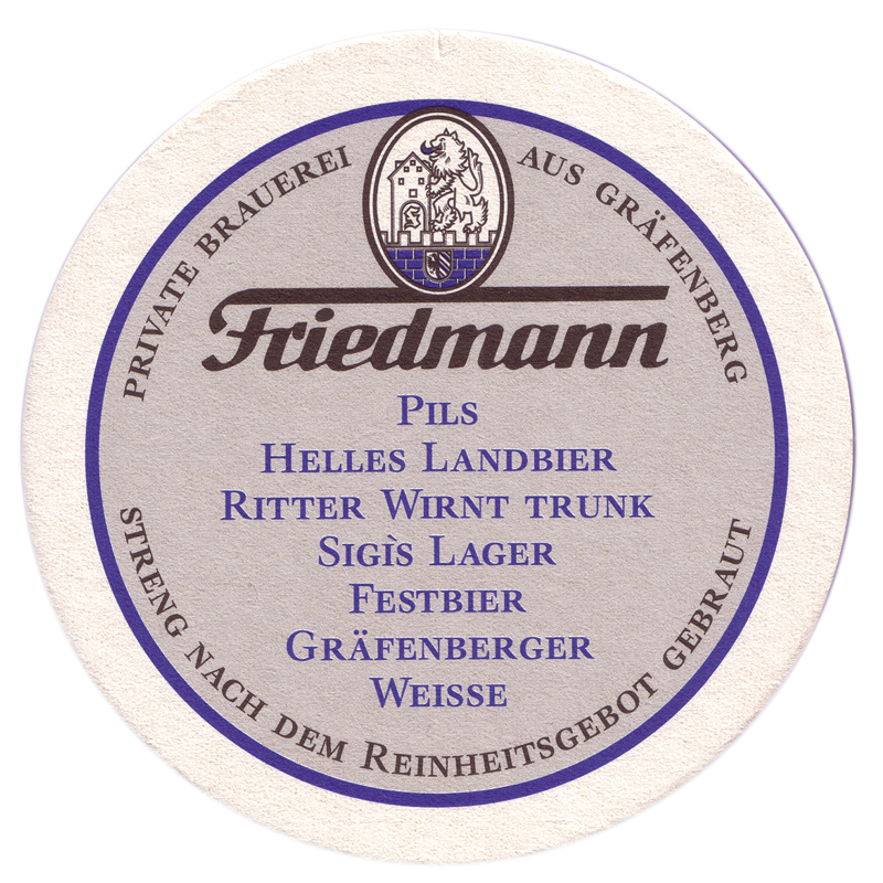 Friedmann Hell, Friedmann Pils, Ritter Wirnt Trunk, Gräfenberger Weisse.