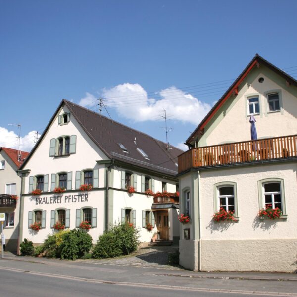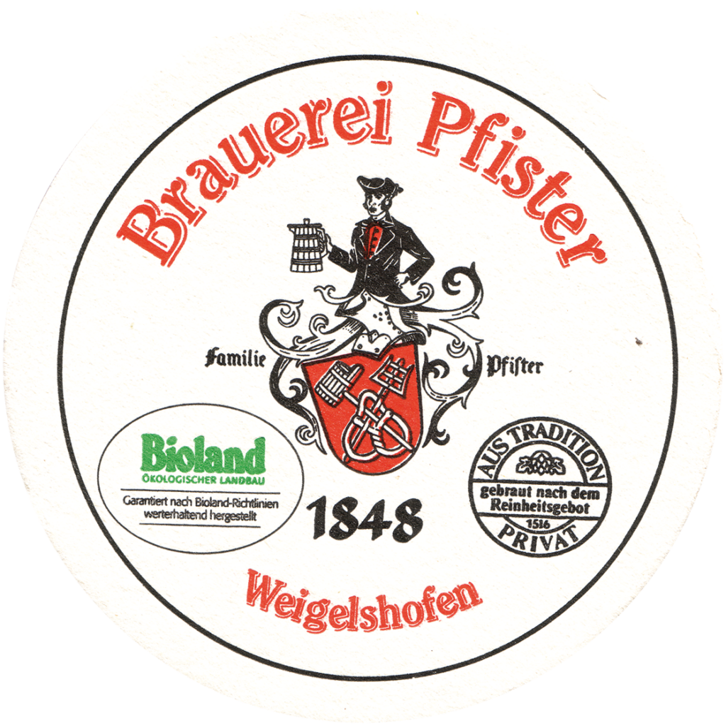 Die Biere, die aus der Brauerei Pfister kommen, werden ausschließlich aus ökologisch angebauten Braurohstoffen hergestellt, was man durch das Bioland-Siegel unterstreicht. Dem Geschmack tut das allerdings keinen Abbruch, ganz im Gegenteil: Sowohl das Öko-Landbier als auch das Öko-Schwarzer-Keller-Bier sind supersüffig. Zu Weihnachten beschert Stefan Pfister als „Öko-Christkind“ zudem ein feines Bioland-Bockbier. Anno 1612 begann die Schank-Geschichte in Weigelshofen. Stefan Pfisters Vorfahr Johann startete dann 1848 in der Brauerei und begründete die Familientradition. Wo sonst im Lande die Revolutionswirren tobten, besann man sich in Weigelshofen auf das Wesentliche: gutes Bier. Und gutes Essen, beispielsweise blauer Karpfen und Forelle in den Monaten mit einem „r“ im Namen. Die Bratenfans kommen jeden Sonntagmittag auf ihre Kosten. Zu besonderen Anlässen lädt Biersommelier Stefan Pfister in sein „Brau. Gasthof. Land. Quartier.“ zudem zu leckeren Bierkulinarien mit vielen Bier-Spezialiäten aus aller Welt ein.