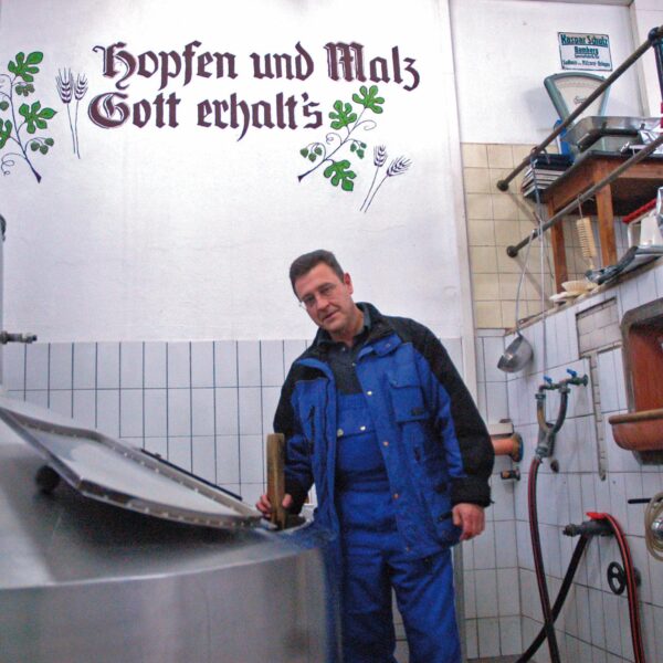 Im Revolutionsjahr 1848 schlug die Geburtsstunde der Brauerei Greif, die im Kapuzinerwirt, wie das Haus Nummer 18 in der Sattlertorstraße von den Forchheimern genannt wurde, entstand. In der über 150-jährigen Geschichte konnte die Forchheimer Brauerei viele Stammkunden gewinnen und hat die Auszeichnungen der DLG sowie den European Beer Star quasi abonniert, zumindest haben wir noch kein Jahr ohne Prämierung gefunden. Den Beer Star gewannen 2013 übrigens Vater und Sohn jeweils mit ihrem eigenen Bier – auch ein absolutes Novum! Im Wirtshaus trifft der Bierfreund vor allem auf Stammgäste und Wanderer. Eine Speisekarte sucht man allerdings vergebens, hier steht ganz klar das leckere Bier im Vordergrund. Mitten in der Stadt gelegen ist der Weg zur nächsten Brotzeit – die auch gerne mitgebracht werden darf – aber nicht weit. Besonders schön liegt auch der Greif-Keller auf dem Forchheimer Kellerberg. Nicht nur zum legendären Annafest Ende Juli einen Besuch wert. Wer hier noch nicht war, hat einen festen Bestandteil fränkischer Kultur noch nicht erlebt. Und wer schon mal da war, kommt sicher wieder!