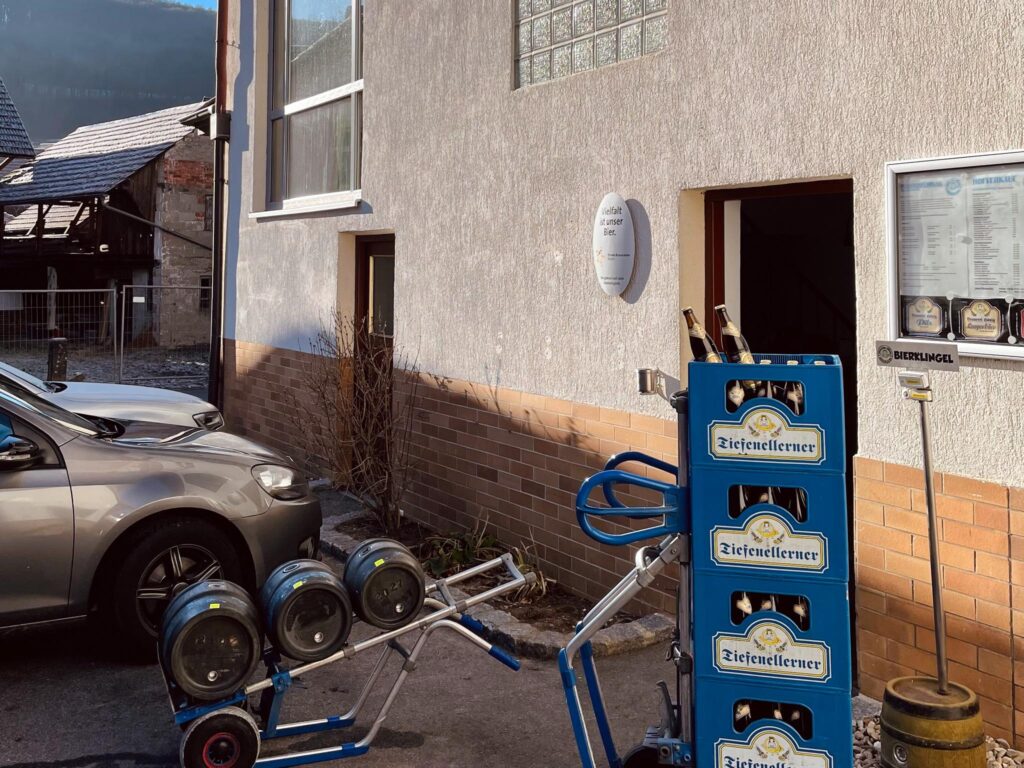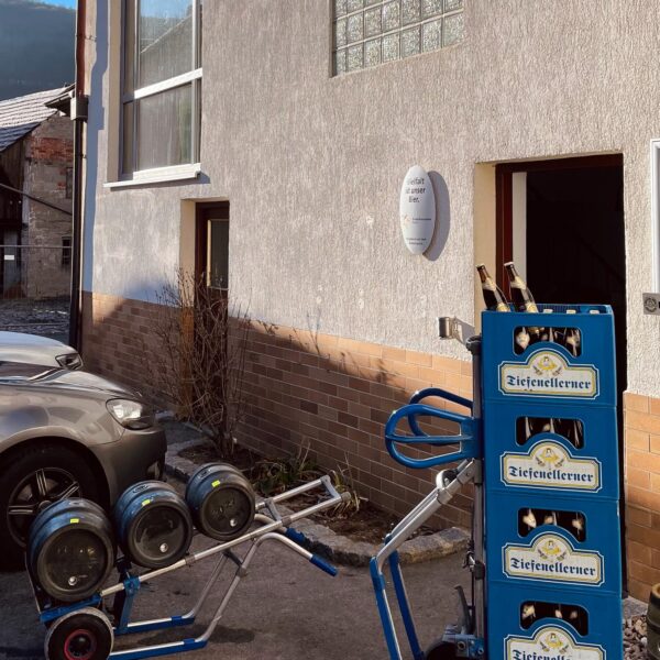 Bis 1911 stand an der Stelle der Brauerei in Tiefenellern in der Fränkischen Toskana die Poststation, in früheren Jahrhunderten auch mit Pferdestall und Umsattlerei. Heute bietet das Haus nur noch Bier. Moment, ganz falsch ausgedrückt: Es bietet ein sensationelles Bier! Sehr süffig und urig kommen das ungespundete Lager und das dezent rauchige „Posthörnla“ rüber, gebraut nach den über 250 Jahre alten Rezepten, und wecken immer wieder die Lust auf ein weiteres Seidla. Dies kann natürlich auch eine „Postillion Weiße“ sein, wenn man eher süffige Weizenbiere mag. Früher gab es hier die allerletzte Chance auf Bier vor der ultimativen Bergetappe: Bis 1911 Übernachtungsstation für die Postkutscher aus Bamberg, war der Keller auch in den 60er-Jahren am Brennpunkt der überregional bekannten Auto- und Motorradrennen am Tiefenellerner Berg. Damals kostete der Ochse selbst zur Kirchweih noch 3,50 DM. Lang ist´s her. Heutzutage ist der Anstieg zumindest eine Herausforderung für Radfahrer, sowohl vor als auch nach dem Genuss des Bieres.