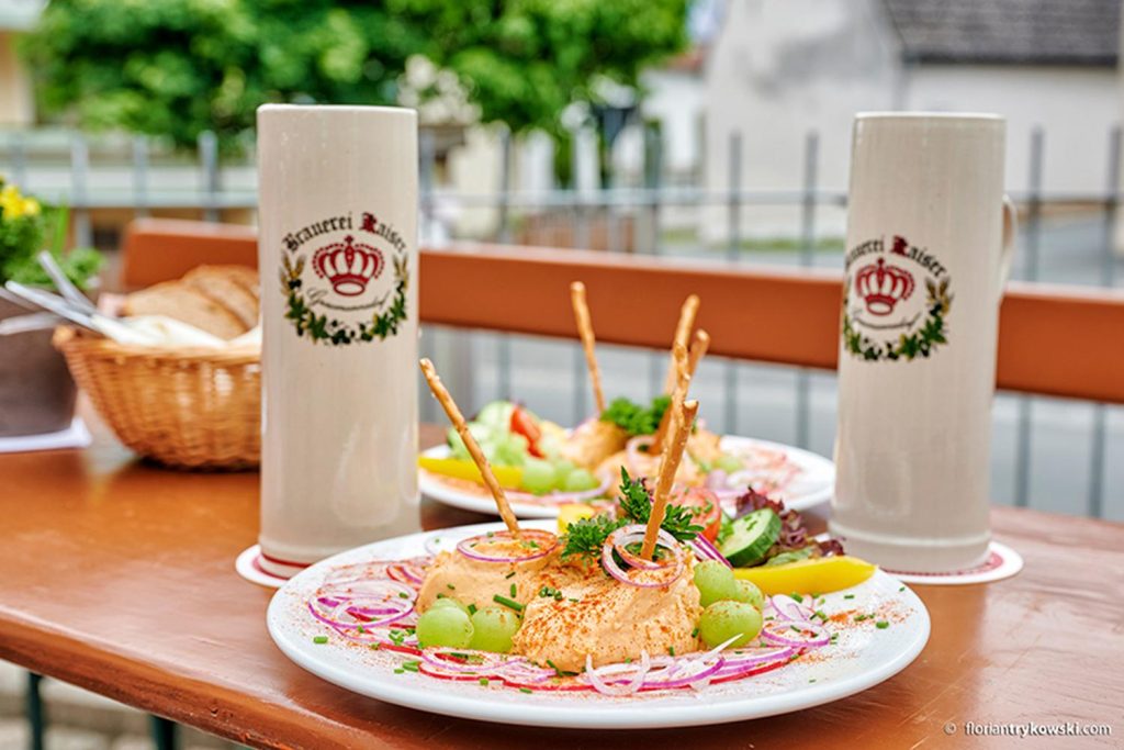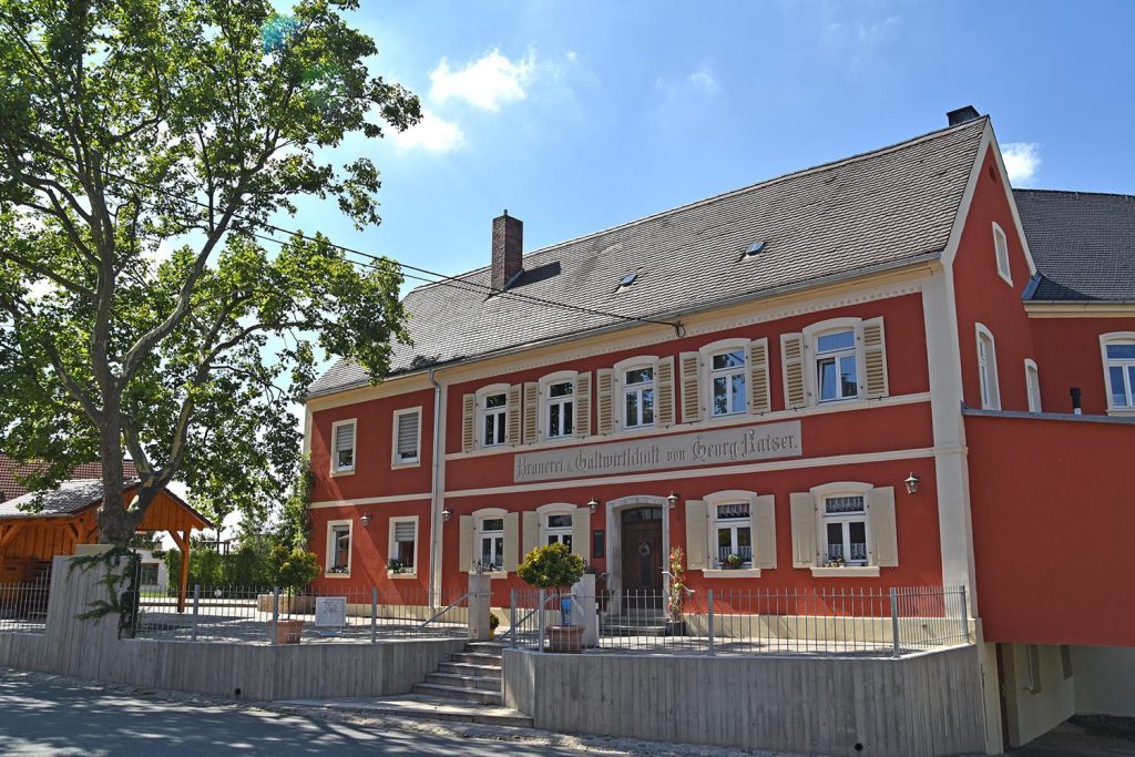 Insgesamt sieben Heilige wachen über Grasmannsdorf und seine alte Ebrachbrücke: Nikolaus, Nepomuk, Kilian, Vitus, Wolfgang, Heinrich und Otto. Seit 1783 steht ihnen mit der ehemaligen Schlossbrauerei auch noch guter Gerstensaft zur Seite, heute heißt sie Brauerei Kaiser. Der Klassiker im Hause ist das Pils, ergänzt durch ein spritziges Weizen im Sommer, sowie ein malzbetontes Festbier und einen hellen Bock zur Weihnachtszeit. Letzterer hat mit 17,5 Prozent Stammwürze und 7,5 Prozent Alkoholgehalt nach seiner achtwöchigen Lagerung Einiges zu bieten. Die ca. 250 Einwohner versammeln sich mehr oder weniger vollständig nach der Kirche bei Georg Kaiser und seiner Familie im Brauerei-Gasthof – so wie sie es gefühlt schon immer getan haben. Der Renner ist dabei die halbe Ente (warme Gerichte müssen vorbestellt werden). Im Sommer lädt zudem auch der Biergarten zum regelmäßigen Besuch – das Essen darf gerne mitgebracht werden. Allerdings gibt es sehr gute Brotzeiten aus eigener Herstellung, ab und an sogar Schlachtschüssel. Außerdem sollten Sie sich den vorletzten Sonntag im August vormerken: da ist Kerwa angesagt …