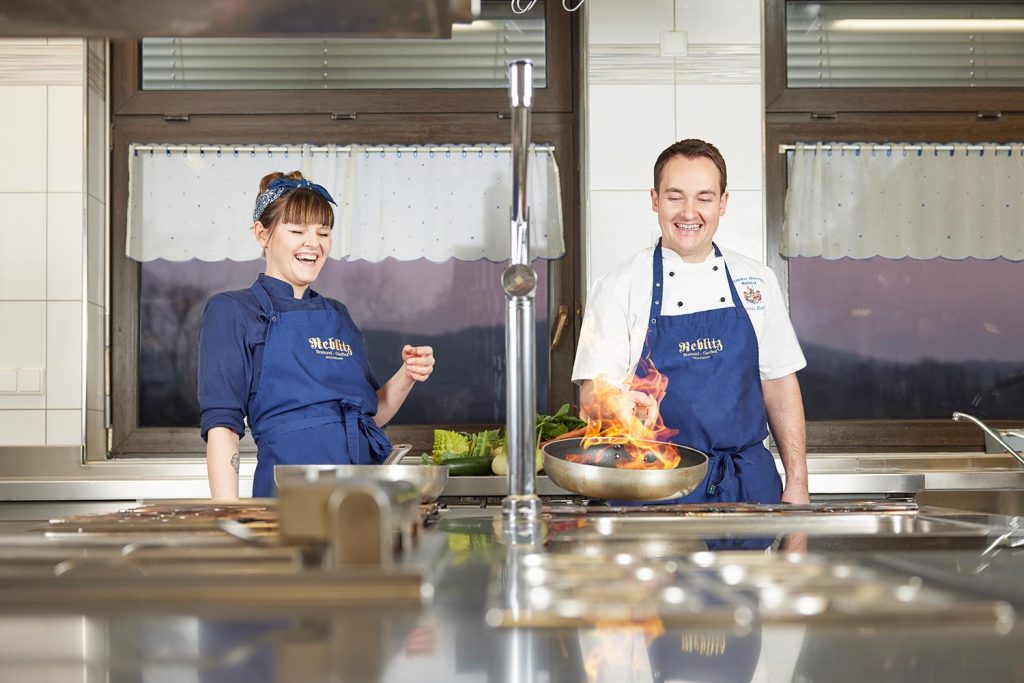 Der Name „Kleines Brauhaus in Nedensdorf“ hat seinen Ursprung in der Tatsache, dass die Brauerei, wenn man die Jahresproduktion betrachtet, eine der kleinen ist. Trotzdem arbeitet man hier mit modernster Technik und schafft so eine konstant hohe Qualität – was nicht selbstverständlich ist. Das dunkle Lagerbier besticht durch seinen süffigen Charakter und macht Lust auf mehr, ebenso das im Sommer ausgeschenkte „Nedensdorfer Hefeweizen“. Am Freitag nach Allerheiligen freuen sich die Bierfans regelmäßig, wenn Reinhold und Thomas Reblitz ihren urigen Bock anstechen. Von der Gaststätte und vor allem der wunderschönen Sonnenterrasse bietet sich die schönste Aussicht für Bierfreunde: ein direkter Blick auf das Sudhaus. Bei selbst gebrautem Bier und fränkischen Schmankerln oder einer deftigen Brotzeit (die uns ganz besonders begeistert hat!) lässt es sich hier wirklich gut leben. Sonntagmittag gibt es Bratenküche mit Klößen. Nur drei Kilometer von der Obermain-Therme entfernt kann man hier auch sehr gut übernachten und das Freizeitangebot im Umkreis nutzen.