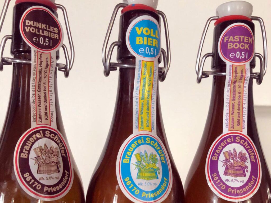 Was anno 1847 im Katasteramt gut war, ist heute nach wie vor aktuell. Denn bei Schrüfers, die mittlerweile schon in der vierten Generation hinter dem Tresen stehen, geht es absolut gerecht zu. Jeder bekommt ein Vollbier – ein typisch fränkisches, sehr geschmacksintensives Bier, das jeden Gast immer wieder aufs Neue überzeugt – gebraut von Wolfgang Schrüfer, dem Sohn des jetzigen Braumeisters und Inhabers. Natürlich passt das gute Schrüfer-Bier zu den Brotzeitklassikern des Hauses. Doch noch spannender finden wir die Kombination Kuchen und Bier, die Sie hier jeden Tag ausprobieren können. Denn die Hausherrin zaubert eine wahre Kuchen- und Tortenpracht, für die viele Gäste dann eben schon am Nachmittag kommen und das kleine Süßstück vor der eigentlichen Brotzeit zwei Stunden später genießen. An Sonn- und Feiertagen geht’s auch andersrum: erst der leckere Mittagstisch und dann der Kuchen. Erwähnung sollte auch die Pizza finden, die jeden Freitag ab 17 Uhr frisch gebacken wird. Egal, was auf den Teller kommt – das Vollbier passt immer dazu. Probieren Sie es mal aus …
