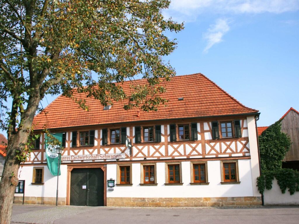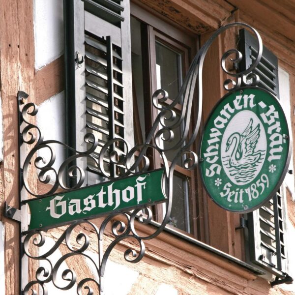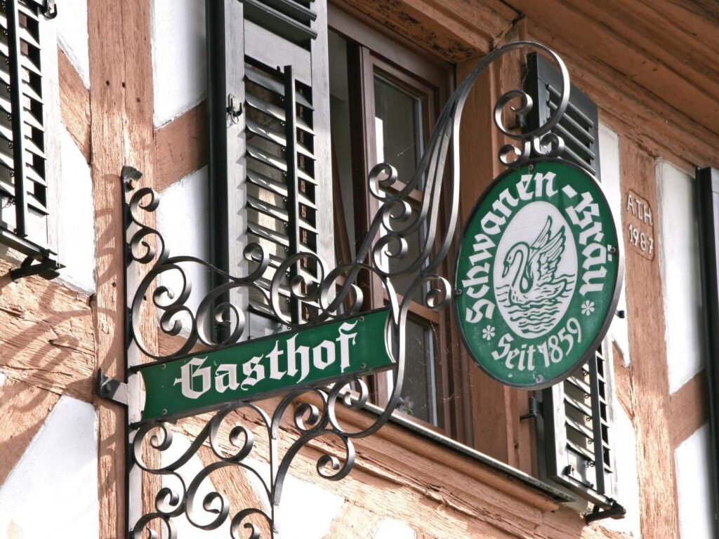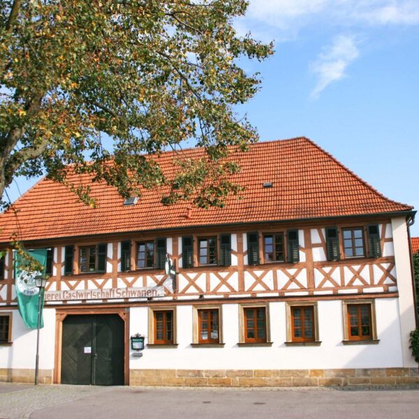 Die Schwanen-Bräu befindet sich zwar erst seit fast 160 Jahren im Besitz der Familie Hübner, der Ort Ebing selbst aber existiert wohl schon länger als die Bierhauptstadt Bamberg. Mit der Gründung des Erzbistums Bamberg kam der Ort dann zu dem hiesigen Kloster Michaelsberg. Und mit den Klöstern kam bekanntlich die Biertradition. Übrigens: Östlich von Ebing wurde bei Baggerarbeiten in einem Kieswerk ein bronzener Helm aus der Urnenfelderzeit (1200 bis 700 v. Chr.) gefunden, der eine noch längere Geschichte vermuten lässt. Auch das Fachwerkgebäude, in dem die Brauerei-Gaststätte ihre Pforten öffnet, ist ein historisches Kleinod und steht unter Denkmalschutz. Hier essen und trinken die Gäste schon seit Jahrhunderten Brotzeit und Bier – und können auch übernachten. Barbara Hübner nimmt alle drei Säulen dieser Gastlichkeit besonders ernst und verwöhnt die Gäste mit einem Komplettprogramm. Zum süffigen dunklen Vollbier bereitet sie seltene Spezialitäten, wie zum Beispiel saure Kuttelfleck oder alle vier Wochen ihre legendären Bierhaxen. Und natürlich kann der Biergenießer auch jederzeit ein Zimmer buchen.
