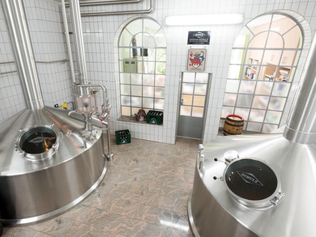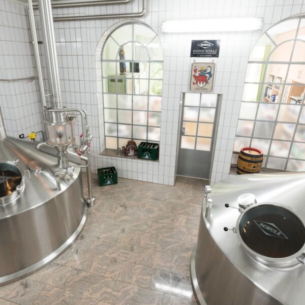 Unmittelbar hinter der Basilika Vierzehnheiligen befindet sich die Alte Klosterbrauerei mit Bräustüberl und großem Biergarten. Gebraut wird dort seit es die Wallfahrtskirche gibt. Und seit 1803 stehen die Trunks an Sudpfanne und Läuterbottich. Das Bier, das hier erzeugt wird, ist für die Fans wahrhaft göttlich, ein echter Genießerschluck. Unser Favorit dabei: der dunkle „Nothelfer Trunk“. Urig, süffig, malzig, einfach ein richtig gutes typisch fränkisches Bier, das man am besten einfach mal probieren sollte. Je nach Saison können sich die Gäste hier vor Ort bis zu zehn verschiedene Biere im Kasten, Fass oder Partyfass abholen. Das ist enorm, wenn man bedenkt, dass gerade im Sommer hier oben die Zapfhähne nicht mehr stillstehen. Erst die Kirche, dann das Bier: So sollte zumindest theoretisch die Reihenfolge beim Besuch von Basilika und Klosterbrauerei in Vierzehnheiligen sein. Im Unterschied zur Kirche kann man hier genau sehen, wo die Wohltaten herkommen. Die Wirtschaft schließlich lockt mit Brotzeiten aus Hausschlachtung, die im Sommer am besten in dem schönen Biergarten schmecken.