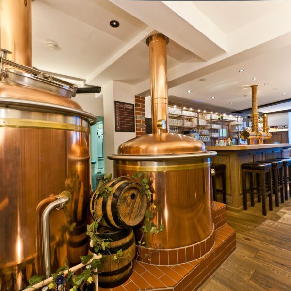 Es gibt endlich wieder Coburger Bier in einem Coburger Brauhaus. Allerdings haben die Macher hier eine bunte Mischung aus bayerischen Reminiszenzen und fränkischresidenzlerischen Einflüssen geschaffen: So stehen neben der Coburger „Bratworscht“ auch „Schweinskopfsuizn“ und „Goaßnpeter“ auf der Speisekarte. Zu den drei hauseigenen Bieren unter dem Label „Veste Trunk – Craft Beer“ gibt es auch Produkte aus der Kulmbacher Palette. Die kann man auch moderiert genießen, Biersommelier Markus Timm lädt zu bieriger Audienz mit Brauereiführung, Verkostung oder Biermenü. Umgeben von Lederhosenburschen und Dirndl-Maderln fühlt man sich fast ein bisschen wie südlich des Weißwurst-Äquators, entsprechend kann man hier zum Bier auch die gesamte bayerische Schmankerl-Palette bestellen. Immerhin findet sich noch ein Schäuferle auf der Karte und die Klöße kommen ganz im Coburger Design daher – als fast flüssige „Rutscher“, wie sie nur im hiesigen Landstrich anzutreffen sind. Vielleicht versteht man sich auch etwas als bayerische Botschaft im rot-weißen Land, diese Tradition haben die Coburger ja schon immer verfolgt. Ein weiteres Restaurant unter selbiger Führung ist der Brauhaus Stadl (siehe Website).