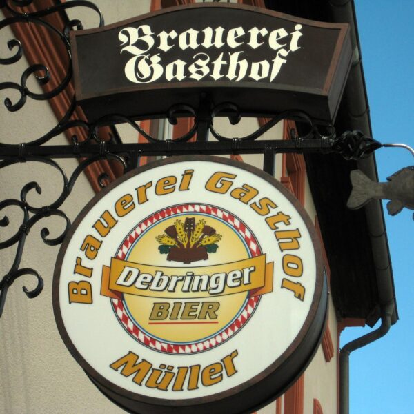 Seit 1699 wird in Debring das urige Bier der Brauerei Müller gebraut. Nach umfangreichen und – wegen der räumlichen Umstände – spektakulären Renovierungsmaßnahmen befindet sich das Haus nun technisch auf dem absolut neuesten Stand und begeistert nach wie vor Einheimische und Gäste mit den süffigen Gerstensäften rund um das klassische dunkle Vollbier, das „Micherla“, ein naturtrübes Bier, und natürlich das süffige Hefeweizen. Urig und klassisch geht es in Debring in Bräustübla und Braubiergarten zu. Hier erlebt man fränkische Brauerei-Gastlichkeit in absoluter Reinform. Die Küche bietet unter anderem Karpfen (wir empfehlen den Pfefferkarpfen!) und Forellen, einheimisches Wild und Hausmacher Brotzeiten aus eigener Schlachtung. Dazu kommen die süffigen Biere aus dem Zapfhahn. Ein besonders lauschiger Platz ist im Sommer der Biergarten hinter dem Haus, eine kleine Oase der Ruhe und Gemütlichkeit mit Blick auf die sanft dahinfließende Aurach, führt doch auf der anderen Seite die recht belebte Bundesstraße nach Bamberg vorbei.